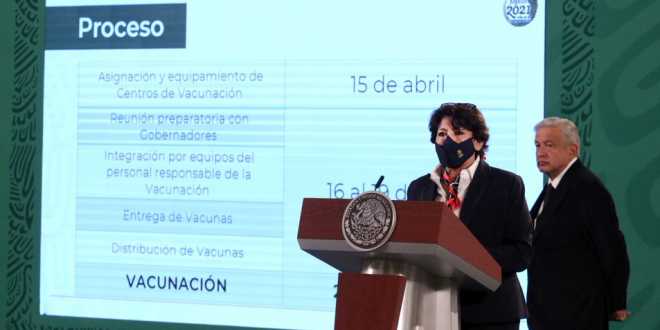 La secretaria de Educación Pública, Delfina Gómez Álvarez, informó que dará inicio la campaña de vacunación a maestros y personal de las escuelas en cinco estados del país, del 20 al 27 de abril, al tiempo que se llevarán a cabo distintas acciones de preparación, previas a la vacunación en el resto de las entidades del país.
