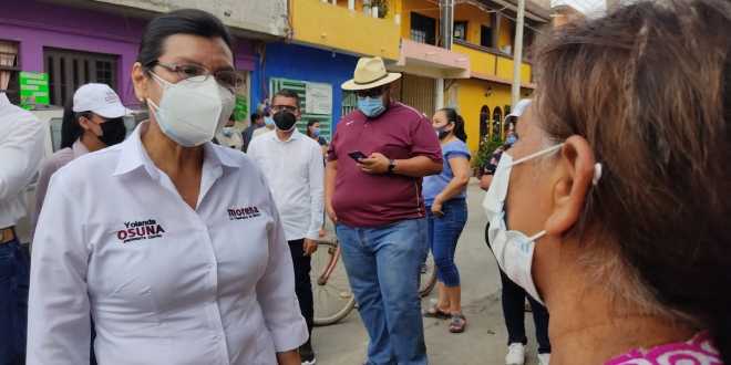 En su quinto día de campaña electoral, la candidata del partido Morena a la presidencia municipal de Centro, Yolanda Osuna Huerta caminó por otra de las colonias más pobres de la comuna: Miguel Hidalgo, Primera Sección, ubicada a solo cinco minutos de Villahermosa.
