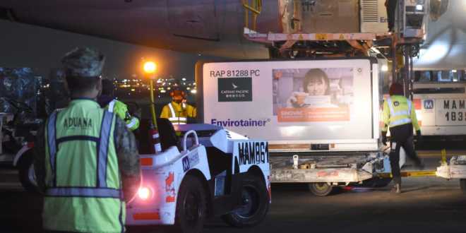Las vacunas recibidas hoy en el séptimo cargamento de Sinovac, sumadas a los anteriores embarques de este laboratorio con sede en China, hacen un total de cinco millones de dosis envasadas.
