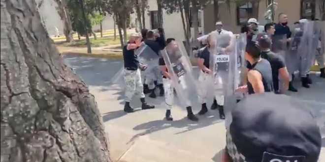 En batalla campal se convirtió el simulacro de contención contra manifestantes que elementos de la Guardia Nacional realizaban como parte de su adiestramiento en la Academia de Sn Luis Potosí, por lo que de los empujones y agresiones verbales pasaron a los golpes, lo que fue captado en video.