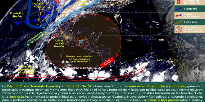 Asimismo, se prevé vientos mayormente del Este y Sureste de 10 a 15 kilómetros por hora, con rachas de hasta 40 kilómetros por hora, principalmente en zona costera durante la noche.