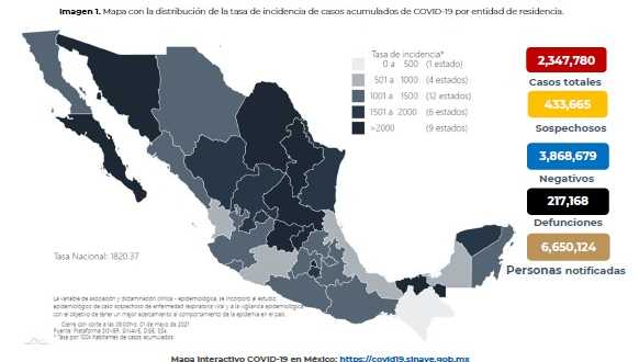 Al 01 de mayo de 2021 hay 1,867,191 personas recuperadas de #COVID19 y 217,168 defunciones confirmadas.