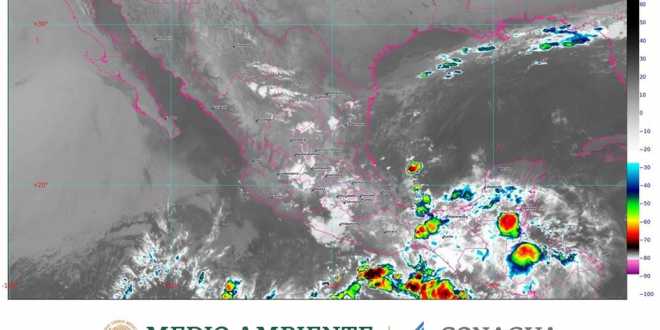 Hoy, se pronostican lluvias puntuales intensas (de 75 a 150 milímetros [mm]) para Campeche, Chiapas y Tabasco; muy fuertes (de 50 a 75 mm) en regiones de Oaxaca, Puebla y Veracruz; fuertes (de 25 a 50 mm) en zonas de Chihuahua, Hidalgo, San Luis Potosí y Tamaulipas; intervalos de chubascos (de 5.1 a 25 mm) en Coahuila, Durango, Estado de México, Guanajuato, Guerrero, Nuevo León, Querétaro, el sur de Quintana Roo y Zacatecas, y lluvias aisladas (de 0.1 a 5 mm) en Aguascalientes, Ciudad de México, Jalisco, Michoacán, Morelos y Yucatán.