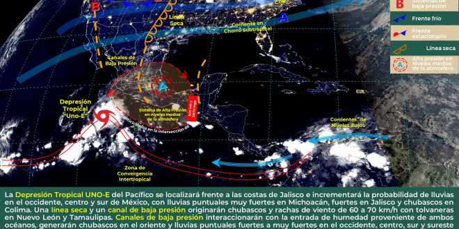 Explicó que las precipitaciones se esperan por un canal de baja presión, limitado por una masa de aire relativamente seca y estable, por lo que las lluvias podrían caer de manera vespertina y nocturna.