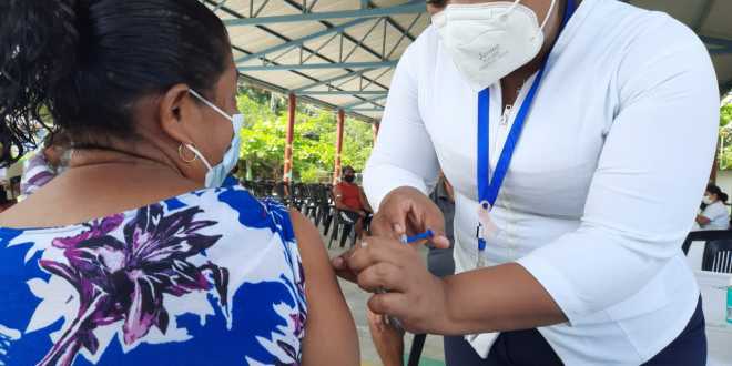 Asimismo con orden se realizó el programa de inoculación, con el compuesto de Pfizer BioNTech, en el penúltimo día de esta jornada en Puerto Ceiba y poblado Chiltepec.