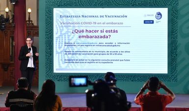 Durante la conferencia de prensa para actualizar la situación de la pandemia por COVID-19, indicó que las mujeres embarazadas que tengan 18 años o más y a partir de las nueve semanas de gestación, podrán ser inmunizadas con cualquiera de las vacunas disponibles en nuestro país. Los biológicos protegen a la madre y pueden generar inmunidad en la persona recién nacida.