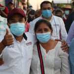 Siguiendo su recorrido matutino también visitó la colonia Solidaridad esta vez sumándose la química Alejandra Márquez Cristino donde casa por casa lo recibieron con un cálido saludo y platicaron sobre las diversas problemáticas que aqueja a la cabecera Municipal tales como problemas con la luz eléctrica, agua potable sucia, nulo apoyo en programas de vivienda, etc.