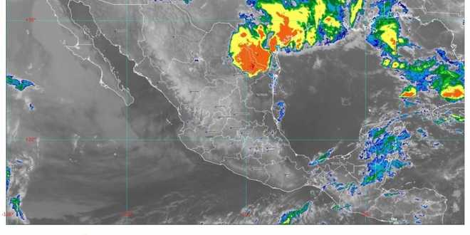 Un sistema de alta presión posicionado en niveles medios de la atmósfera mantendrá el ambiente vespertino de caluroso a muy caluroso en gran parte del territorio nacional, con temperaturas máximas superiores a 40 grados Celsius en zonas de Campeche, Oaxaca, San Luis Potosí, Tabasco, Tamaulipas y Veracruz, y de 35 a 40 grados Celsius en Baja California, Baja California Sur, Chiapas, el suroeste del Estado de México, Guerrero, el norte de Hidalgo, Jalisco, Michoacán, Nuevo León, el norte y sureste de Puebla, el norte de Querétaro, Quintana Roo, Sinaloa, Sonora y Yucatán.