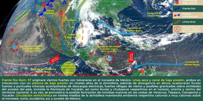 Se prevé cielo despejado durante el día, a nublado por la noche, con vientos del norte y noreste de 15 a 20 kilómetros por hora, con rachas de hasta 60 kilómetros por hora, principalmente en zona costera, con posible formación de trombas.