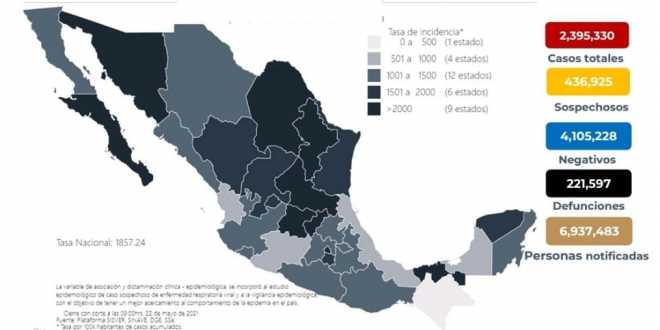 En México hasta el día de hoy se han confirmado 2, 395,330 casos totales y 221,597 defunciones totales por COVID-19.
