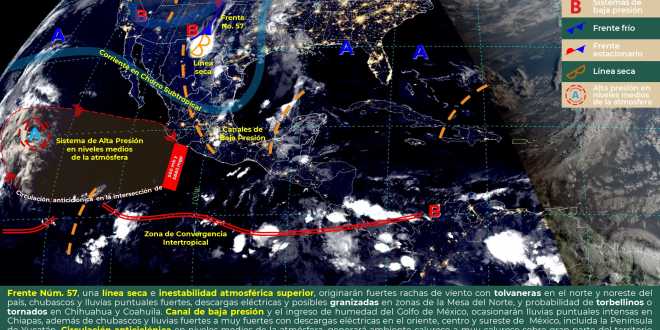 En su reporte diario, el organismo indicó que se prevé cielo parcialmente nublado con vientos del este y sureste de 15 a 20 kilómetros por hora con rachas de hasta 50 kilómetros por hora en el oriente del estado y en zonas de tormenta.