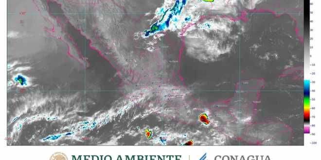 Por otra parte, canales de baja presión asociados con el ingreso de humedad procedente de ambos océanos, provocarán lluvias puntuales muy fuertes en Chiapas y Oaxaca; fuertes en zonas de Guerrero, Puebla y Veracruz; intervalos de chubascos (de 5.1 a 25 mm) en Campeche, Estado de México, Morelos y Tabasco, y lluvias aisladas (de 0.1 a 5.0 mm) en Aguascalientes, Ciudad de México, Durango, Hidalgo, Quintana Roo, Tlaxcala, Yucatán y Zacatecas.