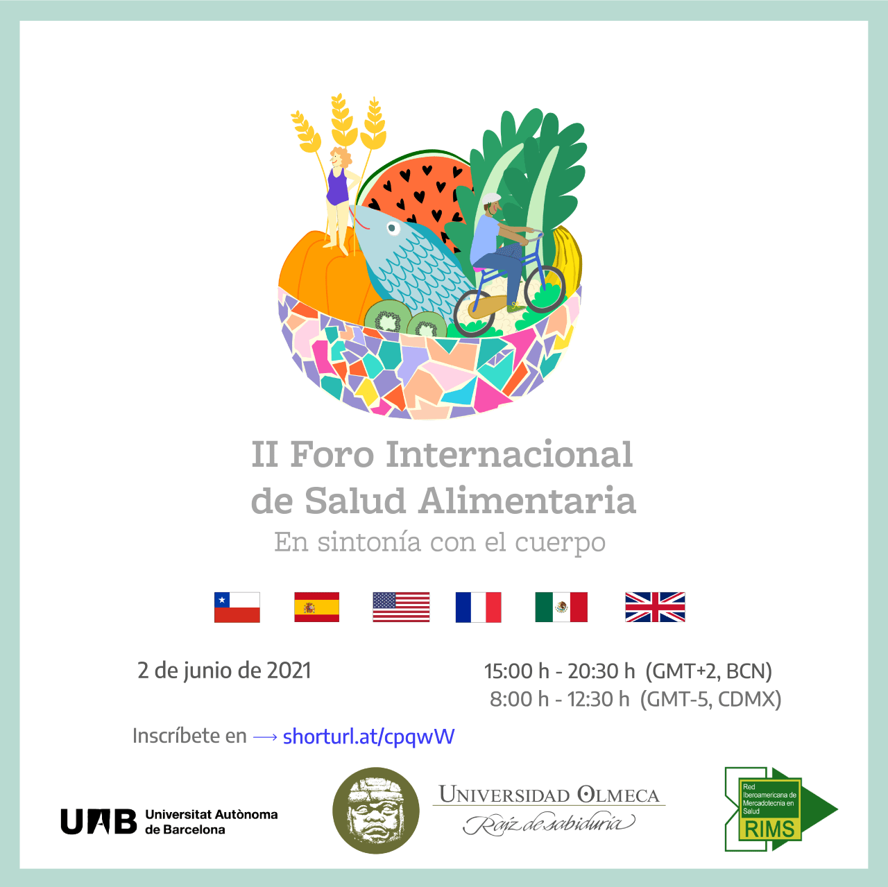 La Universidad Olmeca llevará a cabo la segunda edición del “II Foro Internacional de Salud Alimentaria. En sintonía con el cuerpo”, el miércoles 2 de junio del presenta año, en coparticipación con Universitat Autònoma de Barcelona (UAB) en España, y el aval de la Red iberoamericana de Mercadotecnia en Salud (RIMS), un evento internacional que permite mediante la voz de expertos en la materia, exponer temas relacionados a la salud alimentaria.
