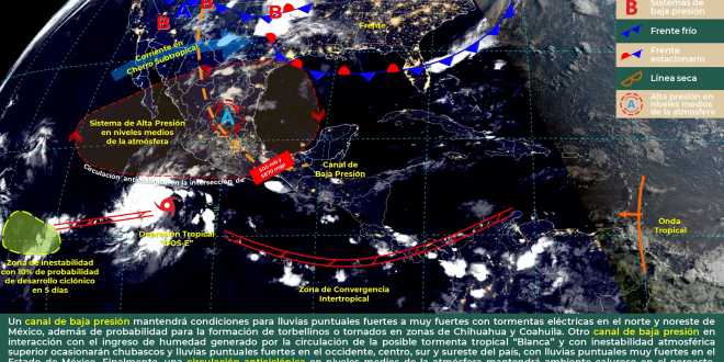 De acuerdo al pronóstico, las lluvias de 0.1 a 5 mm (milímetros) a moderadas aisladas de 5.1 a 25 mm, se presentarán principalmente en el sur y oriente del estado, y pueden darse de manera nocturna y estar acompañadas de actividad eléctrica.
