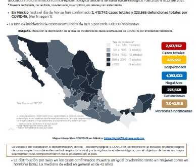 En México hasta el día de hoy se han confirmado 2, 413,742 casos totales y 223,568 defunciones totales por COVID-19.