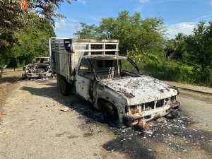 La camioneta de los atacantes también fue incinerada en el mismo sitio