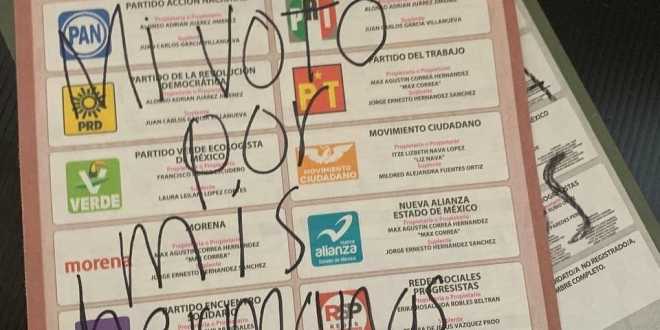 La organización «Colectiva Lunas Tlalnepantla» a través de sus redes sociales difundieron fotografías de las boletas, en donde realizaron pintas para exigir la legalización del aborto.