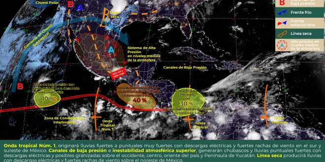 En el reporte diario, el organismo estatal puntualizó que algunos canales de baja presión en el sur del estado y la Península de Yucatán, interactuando con una masa de aire relativamente seca a niveles medios de la atmósfera, favorecerán lloviznas con lluvias moderadas de 5.1 a 25 milímetros en Pantanos, Ríos, Sierra y el sur de Huimanguillo.