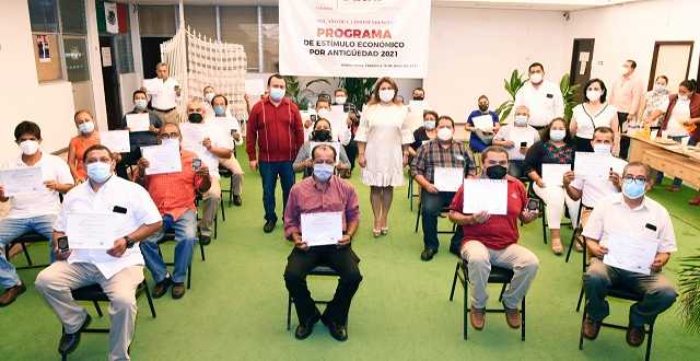 El Gobierno del Estado a través de la Coordinación General Ejecutiva de la Gubernatura, llevó a cabo este jueves la entrega del programa de “Estímulo Económico por Antigüedad 2021”, a 24 trabajadoras y trabajadores pertenecientes a diferentes áreas.