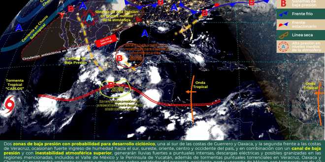 Explicó que las precipitaciones se darán por un agente de humedad del Golfo de México y una zona de inestabilidad sobre la Bahía de Campeche, que interactúan con un canal de baja presión. Las lluvias podrían estar acompañadas de actividad eléctrica, principalmente en las zonas de tormentas.