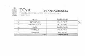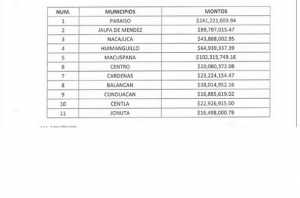 Los municipios de Paraíso y Macuspana registran el mayor monto de endeudamiento por un total de 241 millones y 109 millones, respectivamente.