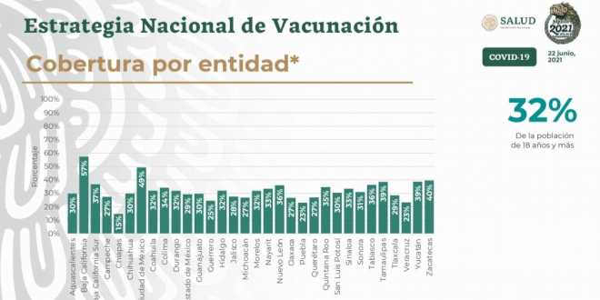 Como resultado del programa especial de vacunación con la vacuna de Johnson & Johnson, en Baja California se ha inmunizado a 57 por ciento de su población mayor de 18 años y es la entidad con mayor porcentaje de cobertura, seguida de la Ciudad de México que llegó a 49 por ciento.