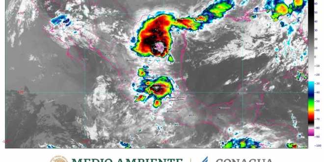 Particularmente, se prevén lluvias puntuales intensas (de 75.1 a 150 milímetros [mm]) en zonas de Hidalgo, Jalisco, Michoacán, Puebla, San Luis Potosí y Veracruz; puntuales muy fuertes (de 50.1 a 75 mm) en sitios de Chiapas, Chihuahua, Durango, Guerrero, Nuevo León, Oaxaca, Querétaro y Tamaulipas, y fuertes (de 25.1 a 50 mm) en localidades de Aguascalientes, Ciudad de México, Coahuila, Colima, Estado de México, Guanajuato, Morelos, Nayarit, Sinaloa, Sonora, Tlaxcala y Zacatecas.