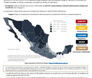 En México hasta el día de hoy se han confirmado 2, 487,747 casos totales y 231,847 defunciones totales por COVID-19.
