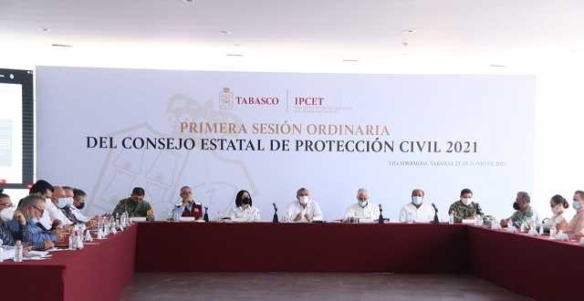 Al encabezar la primera sesión ordinaria del Consejo Estatal de Protección Civil y con el agradecimiento al Presidente de México, Andrés Manuel López Obrador, por su intervención a favor de la seguridad de los tabasqueños, el gobernador Adán Augusto López Hernández, reconoció todas las acciones implementadas para reducir los riesgos de inundación en la entidad y resarcir las pérdidas de las familias afectadas en 2020, con apoyos económicos directos y un programa de reposición de enseres que está a punto de culminar por parte del Ejército Mexicano.