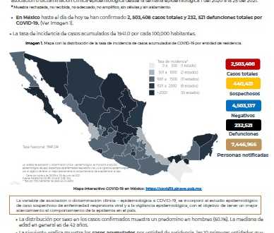 En México hasta el día de hoy se han confirmado 2, 503,408 casos totales y 232, 521 defunciones totales por COVID-19.