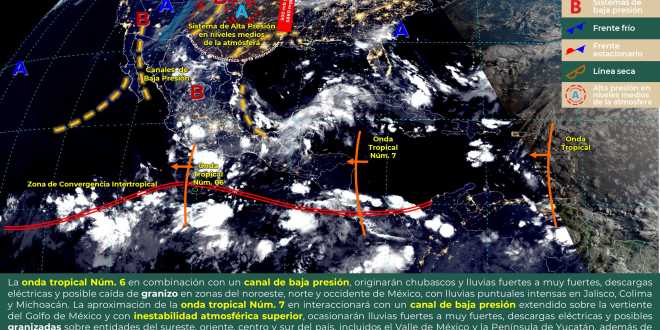 El organismo explicó que las lluvias serán provocadas por la Onda Tropical número 7 y un canal de baja presión sobre el litoral de Veracruz y Tamaulipas, que generarán un aporte de humedad del Mar Caribe y del Golfo de México. Indicó que se espera un ambiente cálido con temperaturas máximas de hasta 35 grados Celsius y mínimas de 22 grados.