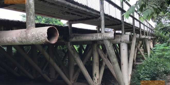 En un recorrido hecho en la zona por Novedades de Tabasco, se constataron las condiciones en que se encuentra: los tubos de acero que forman la base del puente están totalmente corroídos y en algunos tramos los metales ya no están unidos.