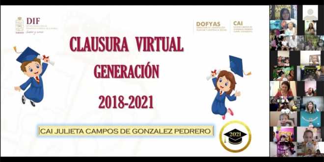 Al clausurar los trabajos del ciclo escolar 2020-2021 del Centro de Atención Integral (CAI) “Julieta Campos de González Pedrero”, la presidenta del Sistema DIF Tabasco, Dea Isabel Estrada de López, agradeció este lunes a padres de familia y tutores su confianza para atender a sus hijos con calidad y calidez.