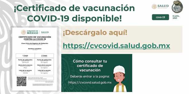 Para comprobar que ha sido vacunado o vacunada contra #COVID19 ya está disponible el certificado de vacunación que puede extraer de la página http://cvcovid.salud.gob.mx.