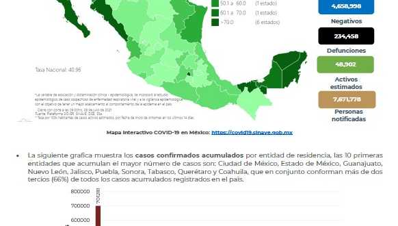 En México hasta el día de hoy se han confirmado 2, 567,821 casos totales y 234,458 defunciones totales por COVID-19.