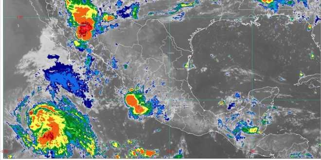 Hoy se pronostican lluvias puntuales muy fuertes (de 50.1 a 75 milímetros [mm]) en Chihuahua, Nayarit, el noreste de Oaxaca, Sonora y el sur de Veracruz; fuertes (de 25.1 a 50 mm) en regiones de Campeche, Chiapas, Durango, Jalisco, Michoacán, Sinaloa y Tabasco; intervalos de chubascos (de 5.1 a 25 mm) en Ciudad de México, Colima, Estado de México, Guanajuato, Guerrero, Hidalgo, Morelos, Puebla, Querétaro, Quintana Roo, Tlaxcala, Yucatán y Zacatecas, y lluvias aisladas (de 0.1 a 5 mm) en Aguascalientes, Baja California, Baja California Sur, Coahuila, Nuevo León, San Luis Potosí y Tamaulipas.