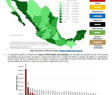 En México hasta el día de hoy se han confirmado 2,678,297 casos totales y 236,810 defunciones totales por COVID-19.