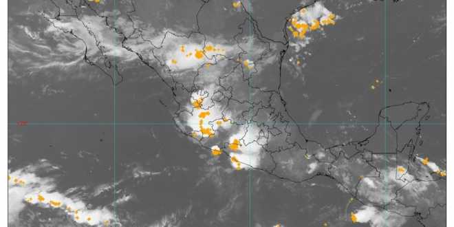 Asimismo, se pronostican lluvias puntuales intensas en Durango; muy fuertes en regiones de Chiapas, Colima, Guerrero, Jalisco, Michoacán, Nayarit, Oaxaca y Veracruz; fuertes en zonas de la Ciudad de México, Estado de México, Guanajuato, Sinaloa y Sonora; chubascos (de 5.1 a 25 mm) en Aguascalientes, Baja California Sur, Campeche, Hidalgo, Morelos, Puebla, Querétaro, Quintana Roo, San Luis Potosí, Tabasco, Tlaxcala y Yucatán, y lluvias aisladas (de 0.1 a 5 mm) en Baja California.