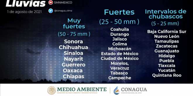 Dichas precipitaciones podrían darse de manera vespertina y nocturna con desarrollo de tormentas aisladas, acompañadas de actividad eléctrica regular a fuerte.