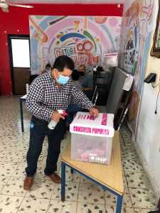 En conferencia de prensa el Vocal Ejecutivo en la entidad, Luis Guillermo de San Denis Alvarado, destacó que la organización del órgano electoral y afirmó que en cada uno de los módulos de votación se siguen protocolos sanitarios ante la pandemia de COVID-19.