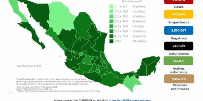 En México hasta el día de hoy se han confirmado 3,123,252 casos totales y 249,529 defunciones totales por