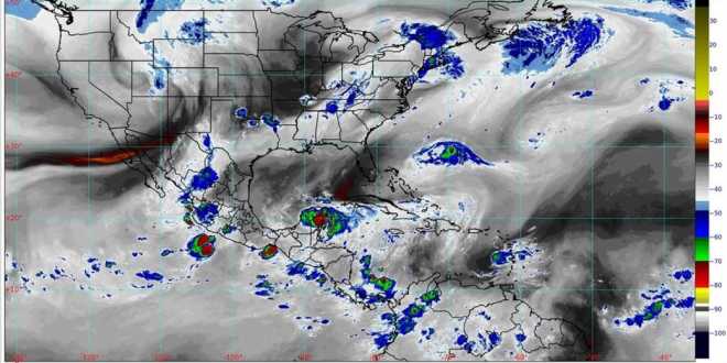Para el Pacífico Norte se estima ambiente templado durante la mañana y muy caluroso por la tarde. Se espera cielo parcialmente nublado en el día, incremento de nubosidad hacia la tarde y descargas eléctricas, así como viento de dirección variable de 10 a 25 km/h en la región, con rachas de 50 a 60 km/h en Sonora.