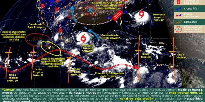 El organismo dio a conocer que las bandas nubosas y el arrastre de humedad de Grace provocarán lluvias moderadas a fuertes aisladas en las subregiones de Pantanos y Ríos, así como en los municipios de Teapa y Tacotalpa, donde podrían presentarse tormentas nocturnas.
