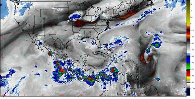 Las lluvias podrían acompañarse de tormentas eléctricas y posible caída de granizo en Chiapas, Colima, Estado de México, Guerrero, Jalisco, Michoacán, Nayarit, Oaxaca, Puebla y Veracruz.