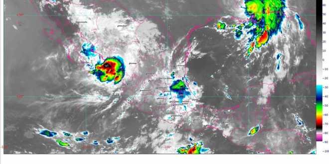 Hoy lunes, se pronostican lluvias puntuales torrenciales (de 150.1 a 250 milímetros [mm]) en Sinaloa; intensas (de 75.1 a 150 mm) en áreas de Chihuahua, Durango Guerrero y Sonora; muy fuertes (de 50.1 a 75 mm) en entidades de Chiapas, Estado de México, Guanajuato, Nayarit, Oaxaca, Puebla, Veracruz y Zacatecas; fuertes (de 25.1 a 50 mm) en sitios de Baja California, Baja California Sur, Ciudad de México, Hidalgo, Jalisco, Michoacán, Morelos, Querétaro, San Luis Potosí, Tabasco y Tlaxcala e intervalos de chubascos (de 5.1 a 25 mm) en localidades de Aguascalientes, Campeche, Coahuila, Colima, Nuevo León, Quintana Roo, Tamaulipas y Yucatán.