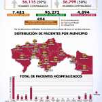 Con corte a las 15:00 horas de este lunes, detalla que de las defunciones notificadas, 14 ocurrieron en las últimas 48 horas y tres en días anteriores. Y añade que del total de casos confirmados, 56 mil 799 son mujeres y 56 mil 115 son hombres. Volvió a pedir a la ciudadanía no acudir a reuniones familiares o masivas y tampoco hacer fiestas.