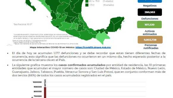 En México hasta el día de hoy se han confirmado 3,369,747 casos totales y 260,503 defunciones totales por