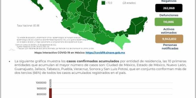 En México hasta el día de hoy se han confirmado 3,420,880 casos totales y 262,868 defunciones totales por