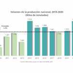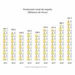 La producción total de tequila en los últimos 11 años, se ha incrementado 45.2% al pasar de 257.5 a 373.9 millones de litros, siendo 2020 hasta el momento, el año con el nivel más alto en este lapso (ver gráfica)