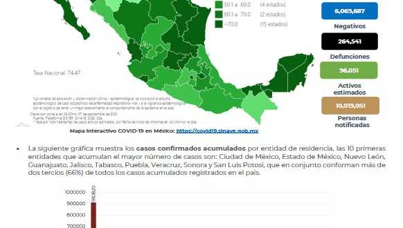 En México hasta el día de hoy se han confirmado 3,449,295 casos totales y 264,541 defunciones totales por